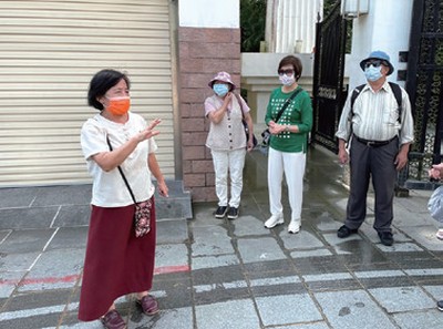 ▲噶瑪噶居寺老師黃 玉梅(左1)特別為 團員講解。