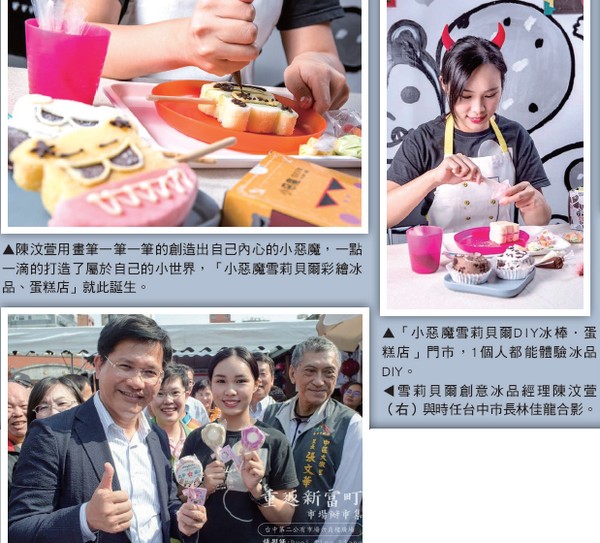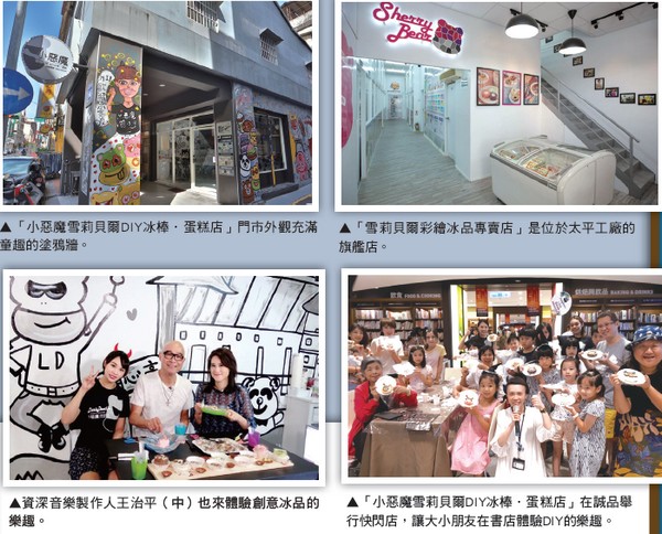 陳汶萱表示,創意冰品觀光工廠是前店後廠的概念,可以讓公司行號、各級學校參觀體驗,甚至是旅行社包裝旅遊商品的好選擇,「工廠導覽+手作課程+說故事互動遊戲」售價150元╱人,團體至少滿20人可享95折優惠。如果是人數少的小團體則可以前往「小惡魔雪莉貝爾DIY冰棒.蛋糕店」門市,1個人都能體驗冰品DIY。