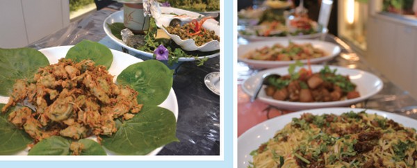 「王功蚵藝文化協會」特別在王功故事館的後方規劃了一處用餐區域,除了能享用碳烤鮮蚵外,還有構樹葉蚵嗲、烏魚子等道地風味餐,充滿古早味的美好滋味絕對令人食指大動。
