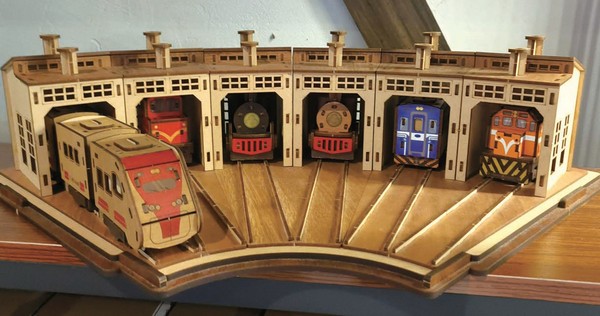 全台唯一的木皮板觀光工廠,特地為戶羽機關車園區打造專屬扇型車庫模型,以及6種可愛的火車拼板玩具,來彰化看百年扇庫的朋友,一定要帶一組回去收藏,親手DIY完成自己的扇形車庫吧!