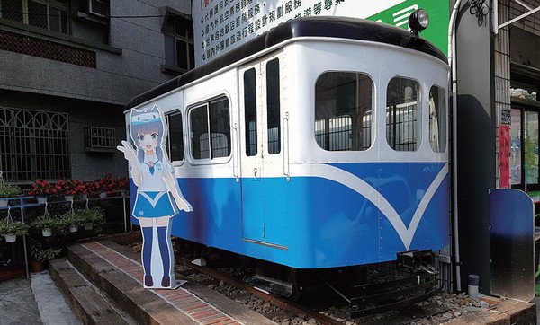 ▲福井食堂外的135巡道車與虛擬代言人小巡。