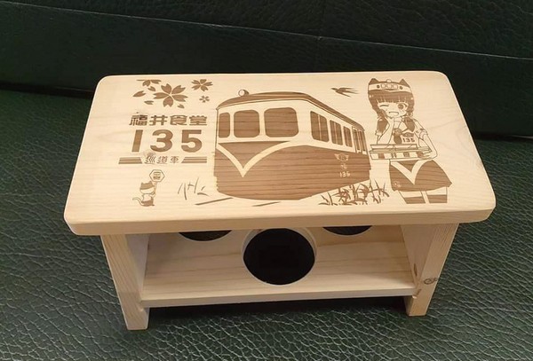 ▲鐵道輕旅行周邊-小巡抱枕、車站杯墊、車站馬克杯、DIY板凳。