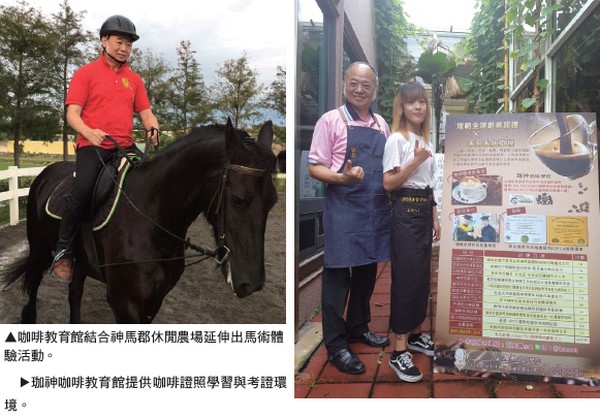 雖後來加入其他額外課程,但教育館仍是以發揚與介紹咖啡為主軸,到訪遊客不僅可以參與耳掛咖啡、手沖咖啡與烘豆等DIY活動,在教育館旁也擁有1座咖啡園,可以讓遊客親手採摘咖啡樹果實。館內亦放有王神寶過去針對咖啡所寫出的3本著作以及講述咖啡相關知識,還結合休閒農場活動延伸出馬術體驗,讓遊客不僅能接觸到更多關於咖啡的背景及技術,同時能在休閒農場體驗自然與馬場風光。