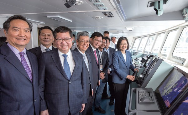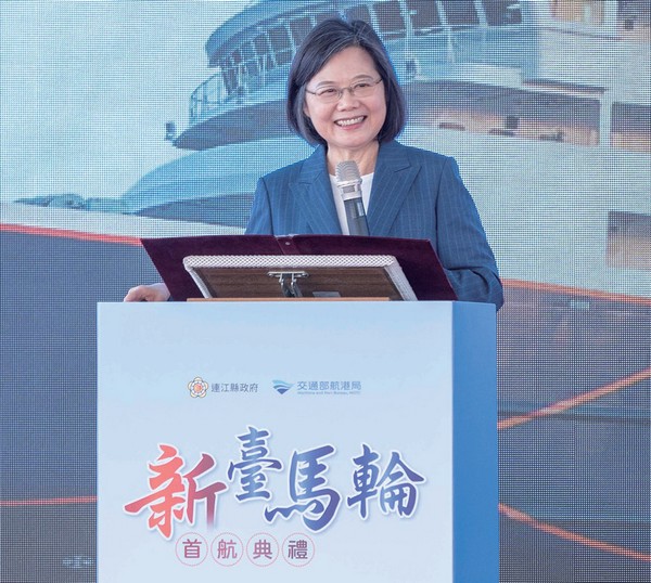 總統蔡英文、行政院長陳建仁4╱16在行政院副院長鄭文燦、總統府秘書長林佳龍、行政院政務委員兼發言人羅秉成、交通部部長王國材、連江縣縣長王忠銘、交通部次長祁文中等貴賓陪同下,出席在基隆港西二碼頭舉辦的新臺馬輪首航典禮,為臺馬交通揭開新的里程碑。