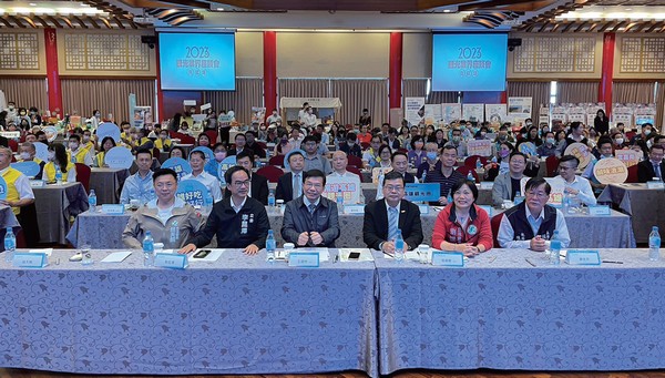 ▲(前排左起)交通部觀光局局長張錫聰、部長王國材、高雄市觀光局局長高閔琳特別出席「2023觀光業界座談會(南部場)」。