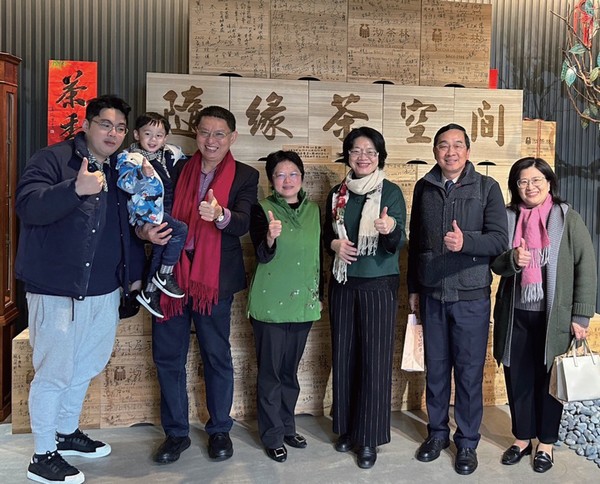 ▲(左3起)AI茶產業發展協會理事長邱國雄、茶改場課長楊美珠、邱國雄夫人黃淑芬、福壽農場場長陳相寶賢伉儷,與貴賓合影。