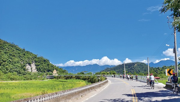 騎乘在玉富自行車道上,欣賞花東縱谷的遼闊田園風光,遠眺海岸山脈,體驗腳踏在兩大板塊之上的獨特感受。