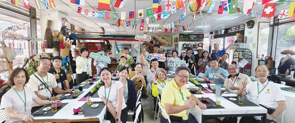 ▲中華觀光管理學會名譽理事長李銘輝(前排右1)與考察團團員們於秋月食堂合影。