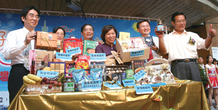 ▲觀光局副局長郭蘇燦洋(左3)與各地觀光局處代表賣力行銷當地特產。