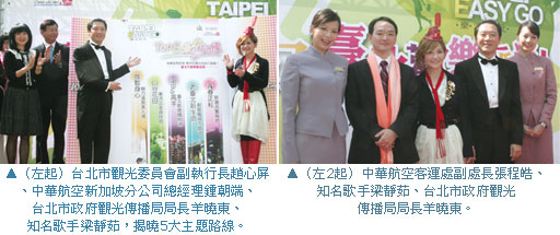針對專案首波造勢的活動,為近日於北投春天酒店舉行的「Taipei Easy Go 樂活魔幻台北」記者會,除邀請新加坡、馬來西亞旅行社業者、台北市觀光產業界代表及代言人梁靜茹等人蒞臨,也把握機會強打台北5大主題行程。