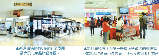 過去宜蘭沒有比較集中的商圈,想要逛街或買日用品可能得去兩個以上不同的地方,而定位為「購物商場」的新月廣場在去年11╱20開幕後,就把大賣場和百貨公司的機能一網打進。不必離開宜蘭就能買到歐美一線品牌的化妝品,包括Chanel也將全亞洲最大的化妝品旗艦專櫃設在這裡。李莉莉強調,「寬敞的樓層空間,每家化妝品專櫃皆設有專屬護膚室,為的就是提供別的地方所沒有的服務。」
