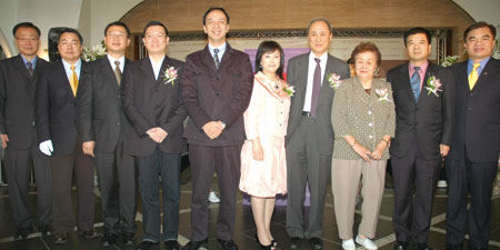 南方莊園渡假飯店盛大開幕,包括桃園縣長朱立倫(左5)、觀光局副局長謝謂君(左2)以及許多地方產官學界人士均到場致意,右4~5為董事長林祥波以及副董事長莊煐逸伉儷。