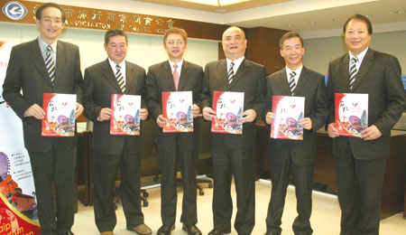 能夠舉辦如此盛大的旅遊展覽會,台北市旅行商業同業公會的工作團隊首先感謝各外國駐台觀光單位、縣市政府、航空公司、台灣景點開發業者、旅行社等夥伴的大力支持,而本次盛會其實從去年9月就開始進行各項招商與行政作業,今年共有超過600多個攤位參展,協力同仁的付出初步已有了亮眼成效,緊接著更期盼活動圓滿順利,更活絡旅業的生氣蓬勃。(左起)「2009台北國際觀光博覽會」資訊組組長李謙宏、活動組組長吳志浤、副主任委員許禓哲、執行長丁萊、副執行長吳雁輝、廣宣組組長張金平。(撰文.攝影>林庭逸)