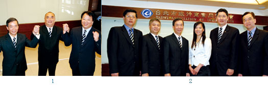 1. (左起)台北國際觀光博覽會籌備委員會副執行長吳雁輝、執行長丁萊、廣宣組組長張金平蓄勢待發。