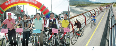 1.(左起)花蓮縣瑞穗鄉長許榮盛、2009縱谷鐵馬自由行活動代言人林義傑、花東縱谷國家風景區管理處處長張振乾、新任花蓮縣長傅崐萁花蓮服務處執行長邱增良、瑞穗分局長張啟祥共同啟用「瑞穗賞櫻自行車道」。
