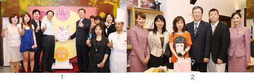 1.(前排左4、5)台北市政府觀光傳播局長脫宗華、華航客運處處長劉永祥與台北市合作廠商共同主持「下一站,台北」啟動儀式。