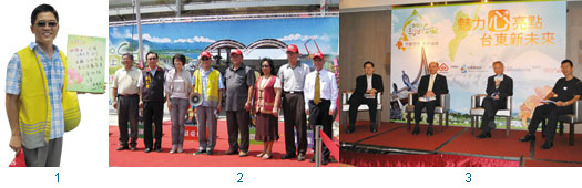 台東縣縣長黃健庭表示,台東為台灣最後一塊淨土,其山海風光不輸國外一流景區,未來不依循台灣西部發展模式,而朝休閒農業、部落遊學、南島文化、運動休閒、觀光旅遊等特色發展,希望從保護地方文化傳統的基礎,做為永續發展典範。交通部觀光局副局長劉喜臨表示,觀光局的「觀光領航拔尖方案」,即把東部設定為「慢活台灣」,希望未來國內外旅客把台東視為門戶,前來體驗樂活能量。經建會都市及住宅發展處處長張桂林指出,經建會10多年前提出「城鄉新風貌行動方案」,台東地區由地方人士協助建設,尤其是觀光產業,地方體質得以改善,落實到國民旅遊,目前已展現成果,過去傳統產業式微,現在則轉型成為觀光、文創、
