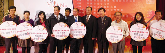 宜蘭縣政府工商旅遊處處長周慶安(右5)、宜蘭觀光協會總幹事張芳鳴(右4)與活動大使黃靖倫(左5)與旅遊業者歡迎大家到宜蘭旅遊。