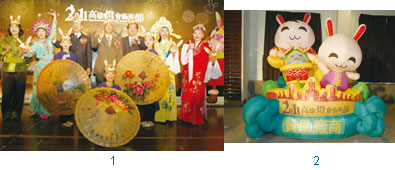 2011高雄燈會藝術節於本月12日起在光榮碼頭、真愛碼頭及愛河沿岸展開為期17天的精采展演,自開幕以來每日皆創下了踴躍的參觀人潮,目前,高雄燈會已進入倒數階段(展期至2╱28止),想要參觀的旅客把握時機。高雄市觀光局局長陳盛山表示,本屆燈會以「百年好合 兔躍高昇」為主題,期望縣市合併後的大高雄能一躍千里,結合藝術城市與文化休閒產業,使觀光資源更豐富。
