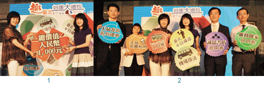 1.台北市政府觀光傳播局局長趙心屏(右)、攜程旅行網旅遊業務部對外合作總監藍美玲。 2.(左起)王品集團台灣事業處品牌部經理林國威、超能量資訊總經理林秀禧、攜程旅行網旅遊業務部對外合作總監藍美玲、台北市政府觀光傳播局局長趙心屏、易遊網執行董事游金章、維格餅家副總經理陳俊安,介紹好康大禮包優惠。