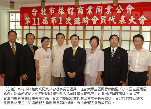 台北市旅館商業同業公會創立60年來,推動國內外觀光住宿的成績有目共睹,也是旅館經營經理人主要的聯誼窗口之一,在日前舉行的歡慶餐會上,更邀集包括交通部觀光局副局長郭蘇燦洋、國民黨台北市委員會主任委員潘家森、台北市議員陳玉梅、台北市觀光委員康炳政….等貴賓與會員朋友共襄盛舉,餐會上,除了對近期可能開放的大陸人士來台觀光作出商討,也集思廣益想出優質的推廣辦法活絡國旅市場以及對於觀光客倍增計畫的初步建議,聚會在溫馨且正面的討論中進行,台北市旅館商業同業公會理事長徐銀樹同時表示,國內旅館與旅遊配套的機制成熟,供應量也充足,開放大陸來台的入住範疇,台北市已率先做好準備。(撰文.攝影>林庭逸)