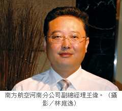 南方航空河南分公司副總經理王偉表示,目前經由香港直往鄭州的班次為每天一班,一週7班的航班規劃,由波音737—300或800型執行飛航,香港起飛時間12:40,下午3:30降落。目前的操作方式,主以細緻的推廣方式,結合業者與台灣旅遊業者的協助,載送穩定的客源維持基本觀光人次為其目的;淡旺季南方航空更講究機動調整機隊,客流量大時會改為800型飛航,種種的努力達成上半年度旅客增長明顯,即是極佳例證。王偉強調,香港直往鄭州是其獨家航線,相較其他航空公司就有相對優勢,再者,全年票價穩定也是南方航空頗自信的部分,業者操作門檻減輕,對於河南旅遊的帶動就有正面效益,甚者,目前由鄭州可直掛行李到台北或高雄,亦減輕遊客負擔,也是航空公司貼心的展現。(撰文>林庭逸)