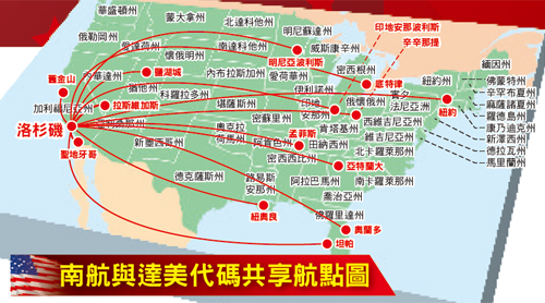 未來,藉由南航與達美航空共同經營美國境內航點,節省額外的中轉成本,在價格上也更為吸引動人,以此佈置美國境內的航線網,旅客抵達洛杉磯後即可轉搭乘達美航空的國內班機,前往美國各大州,業者還可規劃美國本土單一深度城市之旅,推出個人化的包裝行程,符合FIT旅客的需求。