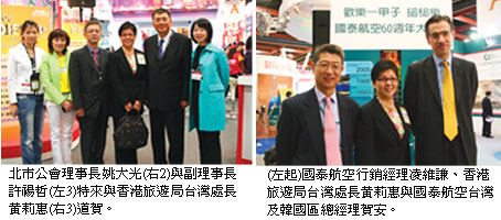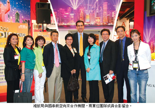 由香港旅遊局台灣處長黃莉惠(後排左4)領軍的娘子軍,以創意巧思推廣香港成績有目共睹。後排左3為天擎總經理陳玉鳳。