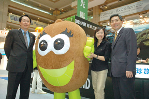 紐西蘭觀光局今年大手筆提供抽獎獎品,展場最大獎將招待一對新人或情侶前往紐西蘭度蜜月,獎品內容包括長榮航空台北—奧克蘭來回機票,以及紐西蘭最頂級飯店─胡卡度假莊園(Huka Lodge)3天2夜住宿,主要贊助的長榮航空順勢而為,推出4天2夜的奧克蘭行程每人只要32,600元,較市場行情幾乎低了5,000元,並且,長榮假期新延伸點陶波,也提供胡卡度假莊園為入住點,相當適合喜歡自主遊的愛侶們。(左起)長榮航空客運部協理李士亮、紐西蘭觀光局台灣區經理劉碧珍、長榮航空總經理陳欣德。(撰文.攝影>林庭逸)