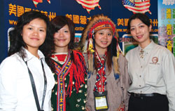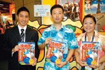 今年美國蒙大拿州聯合愛達荷州、懷俄明州,並與「聯美傳奇」PAK成員如鳳凰、洋洋、行家、山富、錫安、理想等旅行社,以「黃石國家公園」為推廣重點推薦相關產品,三個旅遊局設計有趣好玩的尋寶遊戲,邀請民眾透過尋寶加深對黃石公園的印象與瞭解,現場服務人員則以印地安或牛仔造型現身,相當有意思。此外,每整點舉辦抽獎,送出蒙大拿特製水壺腰包組、牛仔行李牌、懷俄明州側背包與愛達荷州白酒等禮品,讓現場民眾滿載而歸。右1與左1分別為美國蒙大拿州亞太區辦事處代表王美美及愛達荷州亞太區辦事處專員洪鳳伶。