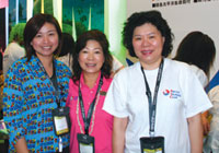 日本觀光協會台灣事務所公關部副理詹智婷(右)、行銷企劃部副理黃玉雲(中)與天喜旅行社商務部副總經理陳淑樺(左)在展場開心合影。(攝影>曾瑋琪)