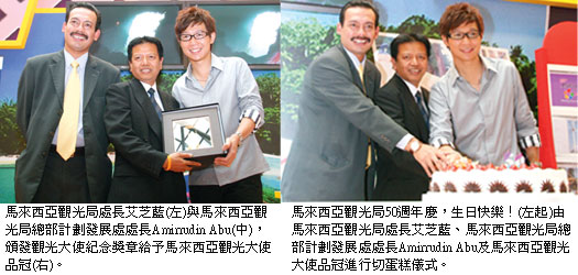 (左起)馬來西亞觀光局處長艾芝藍、馬來西亞觀光局總部計劃發展處處長Amirrudin Abu、馬來西亞旅遊促進局國際市場促銷處中、港、台市場處長陳美玲、馬來西亞觀光局副處長祝乃迪、馬來西亞旅遊促進局國際市場促銷處副處長伊凡迪。為了「2007馬來西亞觀光年」千萬觀光人次的目標,馬來西亞觀光局特別號召12家馬來西亞旅遊機構及多家台灣旅行社,提供完整即時的旅遊諮詢服務,並準備多項好禮,藉此吸引台灣民眾造訪馬來西亞,為明年的馬來西亞觀光年暖身。(撰文.攝影>呂雪芳)