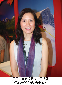 亞伯達省旅遊局大中華地區行銷及公關總監楊春玉表示,今年與雄獅、洋洋、鳳凰旅行社和華航假期合作,每天舉辦5場行程說明會。卑詩省旅遊局台灣區經理張碧珊表示,今年邀請來自加拿大的西洋參和酒商業者介紹全球首間採用人參為主題的SPA館、創新奢華的人參SPA養生療程與冰酒釀造過程,並舉辦「1元競標特賣」活動,相當受到民眾歡迎。(撰文.攝影>曾瑋琪)