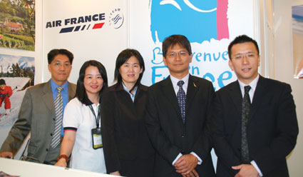 根據估計,每年前往法國的台灣民眾約有16萬人次左右,同樣是來自法國的觀光局與航空公司,法國觀光局台灣區經理翁淑惠(左2)與法國航空—荷蘭皇家航空公司台灣區經理溫爾功(左1)相互合作,共同推廣法國旅遊。(撰文.攝影>曾瑋琪)