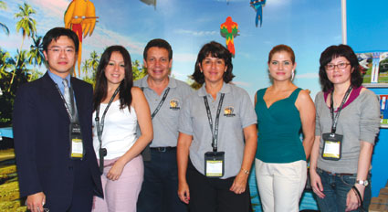 重視台灣市場的關島觀光局特組團來台參展,圖中後排左1與左2分別為關島觀光局行銷專員歐卡特、行銷經理琵菈;右1為台灣辦事處代表簡秀君。