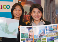環海並與北美、南美接攘的墨西哥,旅遊資源相當豐富,墨西哥商務辦事處執行助理何銀菁(圖右)指出,台灣墨西哥旅遊產品以遊輪類居多,但近年來隨著越來越多旅客前往中南美,墨西哥也是相關產品必定包裝入內的行程,當地自然資源豐富,又有為數勝多的世界文化遺產,可供業者包裝多元化主題產品。(撰文.攝影>曾瑋琪)