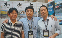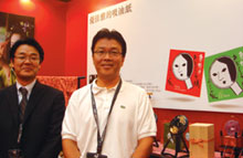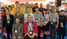 「優佳雅」國枝商店有限公司企劃事業部組長林秀作(左)與前來參展的同事在攤位前合影。(攝影>楊詩涵)