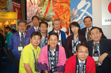 中部地區十縣市聯合參展(前排左起)富山縣觀光聯盟副會長藤井健三.名古屋市市民經濟局文化觀光部長別所真三(中排左2)日本觀光協會中部支部事務局長天野一夫。
