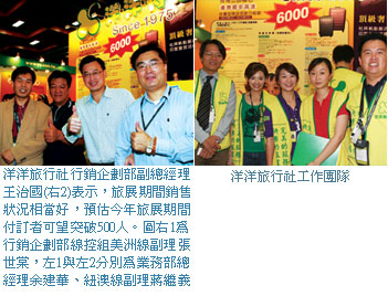 今年洋洋旅行社選擇不玩有獎徵答、互動遊戲,直接回饋旅客最實質的價格優惠,打出「最多回饋6千元」與「奢華旅遊風」的雙口號策略確實奏效,旅展期間吸引大批民眾詢問,將洋洋展攤擠得水洩不通,十分熱鬧。(撰文.攝影>曾瑋琪)