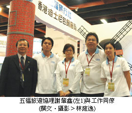 五福旅行社今年在旅展的產品,以日本線和香港為主打,其他如琉球、韓國…等線也各有優惠,如「香戀迪士尼奇幻之旅3日遊」,現場報名價只要12,999元,付訂更不計成本送出凱蒂貓側背包,且採早去晚回班機,旅客有更完整時間遊覽動感之都,詢問熱絡的「潛進琉球4日」,更推出破盤價13,900元,並加贈多項好禮,也是熱銷的產品。(撰文/林庭逸)