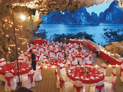 ▲皇冠旅行社曾經利用下龍灣奇特的喀斯特岩洞舉辦晚宴,帶給旅客畢生難忘的經驗。