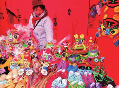 ▲販賣新年禮品的攤販,看起來攤位一片喜氣洋洋。