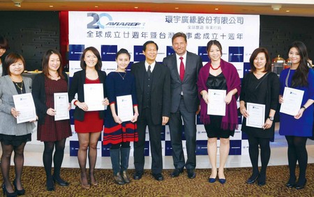 ▲感謝台灣辦事處全體同仁的付出,(左6)環宇廣緣總裁Michael Gaebler特贈感謝狀。