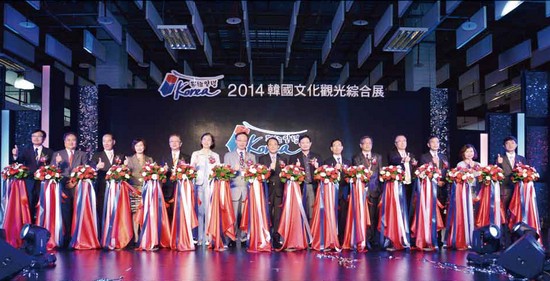 韓國展開幕儀式,由韓國觀光公社海外宣傳室室長羅相勳、駐台北韓國代表部代表趙百相、旅行公會總會理事長許禓哲、韓國觀光公社台北支社支社長劉鎮鎬,以及各航空公司、觀光業代表共同出席剪綵。