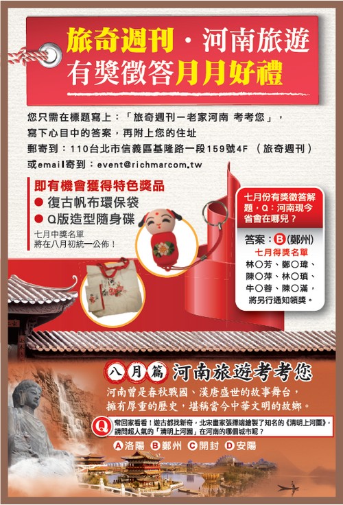 河南旅遊有獎徵答 月月好禮