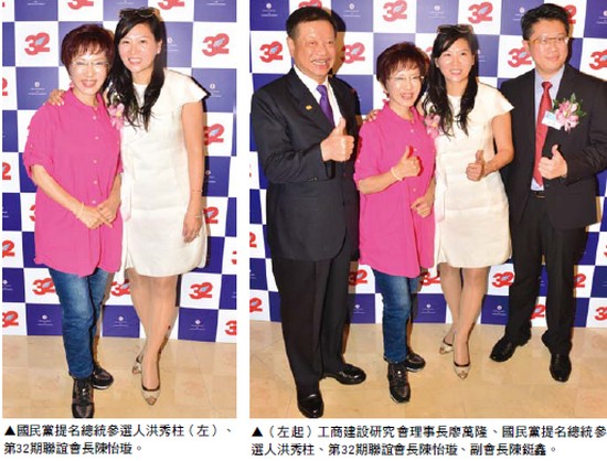 ▲副總統吳敦義(左5)、國民黨提名總統參選人洪秀柱(左6)、第32期聯誼會長陳怡璇(左7)、旅行公會總會榮譽理事長姚大光(右1)及貴賓合影。