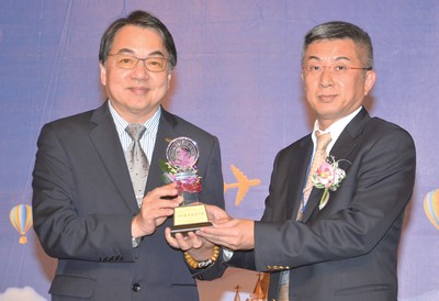 ▲(左起)交通部觀光局局長謝謂君、信安旅遊董事長蔡向忠。