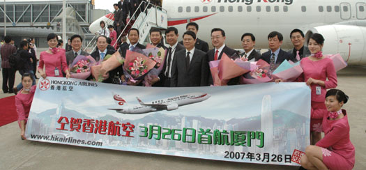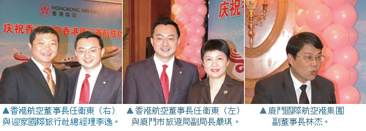 廈門國際航空港集團副董事長林杰補充,廈門是中國改革開放後最早的經濟特區、6大國際口岸之一,具備良好的投資環境吸引眾多跨國公司進駐,亦是著名的華僑之鄉,加上與香港一直擁有密切的經濟合作關係,在香港航空開通了香港至廈門航線後,必定可以方便兩地商務和休閒旅行,深化鞏固了廈門與港澳及海外的聯繫。