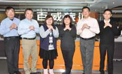 ▲(前排左起)百威旅遊桃園分公司經理張嘉益、直售部主任商中翔。