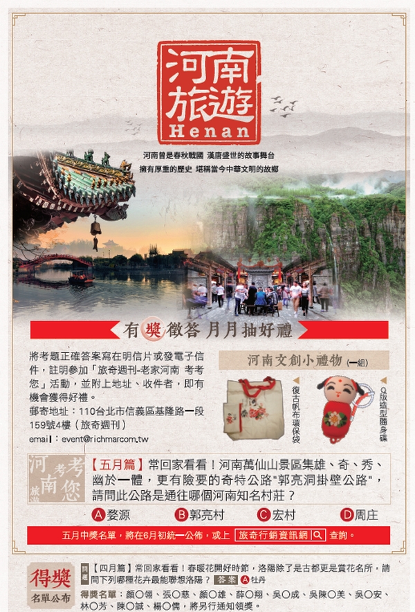河南旅遊有獎徵答 月月抽好禮